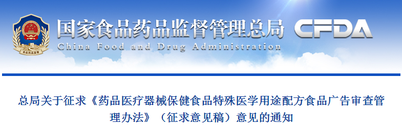 為規(guī)范藥品、醫(yī)療器械、保健食品、特殊醫(yī)學(xué)用途配方食品的廣告審查工作,食品藥品監(jiān)管總局起草了《藥品醫(yī)療器械保健食品特殊醫(yī)學(xué)用途配方食品廣告審查管理辦法》(征求意見稿)。按照科學(xué)立法和民主立法的原則,為凝聚各界的智慧和力量參與食品安全治理,現(xiàn)公開征求意見。請于2017年1月13日前,通過以下四種方式提出意見和建議: