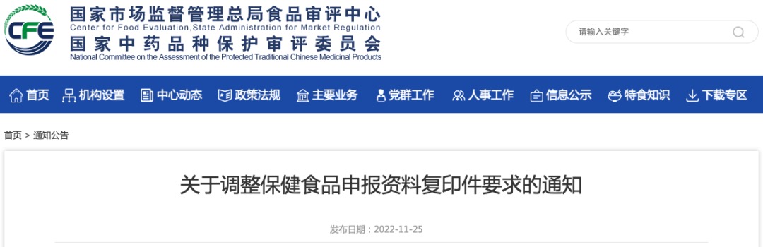 關(guān)于調(diào)整保健食品申報(bào)資料復(fù)印件要求的通知
