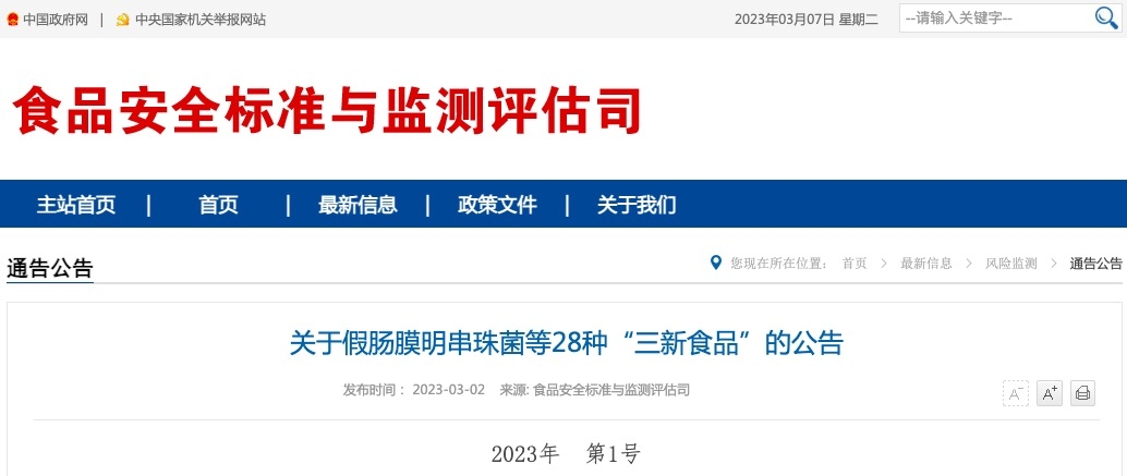 關(guān)于假腸膜明串珠菌等28種“三新食品”的公告