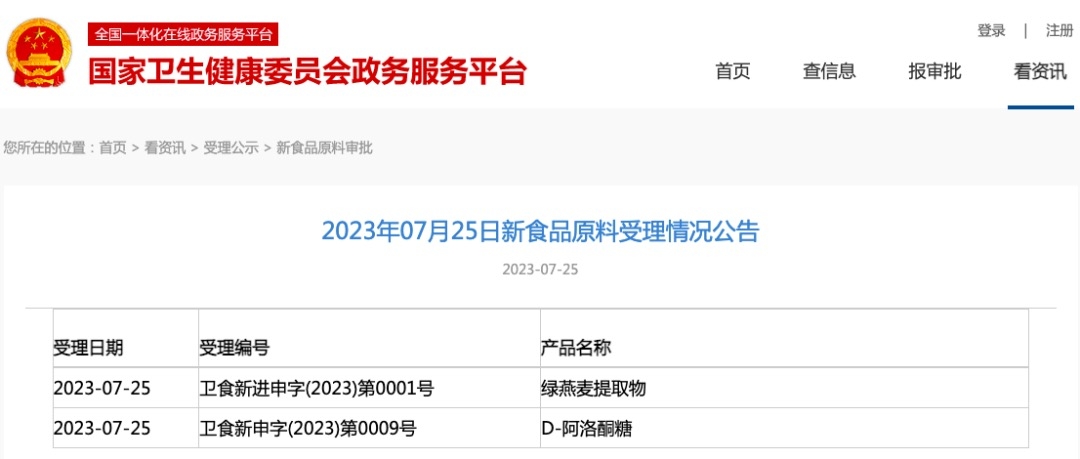 新食品原料 | 國(guó)家衛(wèi)健委發(fā)布綠燕麥提取物、D-阿洛酮糖受理公告