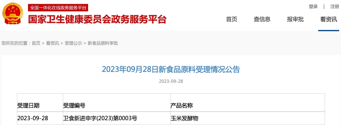 新食品原料 | 國家衛(wèi)健委發(fā)布玉米發(fā)酵物受理公告
