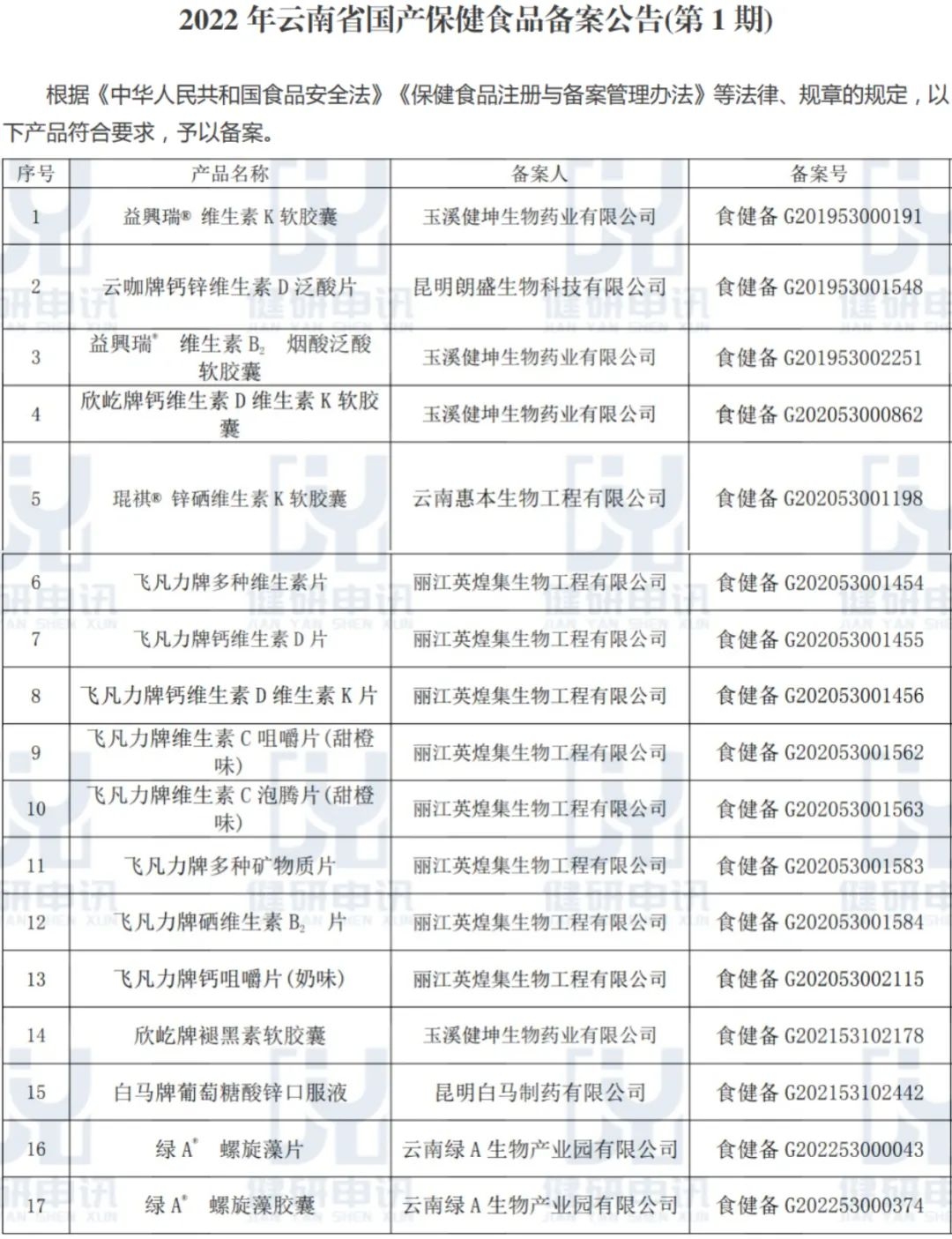 山東省2022年第一期保健食品備案信息匯總