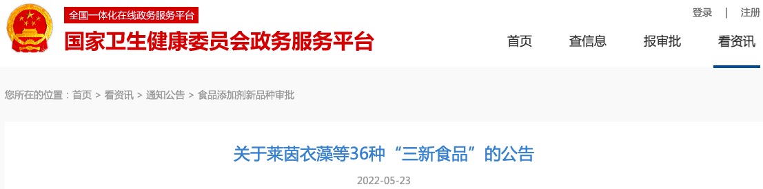 關(guān)于萊茵衣藻等36種“三新食品”的公告