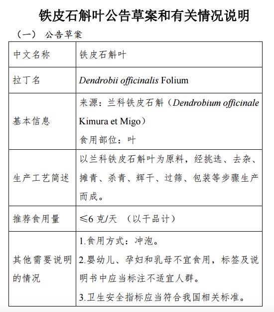 受?chē)?guó)家衛(wèi)生計(jì)生委委托,根據(jù)《食品安全法》和《新食品原料安全性審查管理辦法》的規(guī)定,近期鐵皮石斛葉已通過(guò)專(zhuān)家評(píng)審委員會(huì)技術(shù)審查,現(xiàn)公開(kāi)征求意見(jiàn),請(qǐng)于2018年1月26日前將意見(jiàn)反饋至我中心,逾期將不予處理。