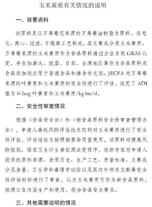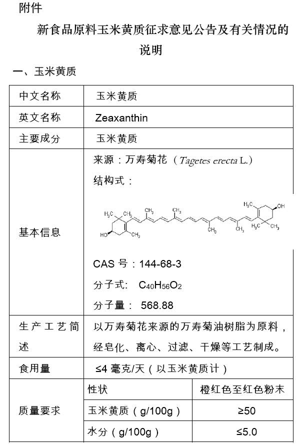 附件為玉米黃質(zhì)征求意見(jiàn)內(nèi)容及有關(guān)情況的說(shuō)明,請(qǐng)自行下載閱讀。如有意見(jiàn)或建議,請(qǐng)反饋至xspyl@cfsa.net.cn,并在郵件主題中注明“新食品原料意見(jiàn)反饋”。